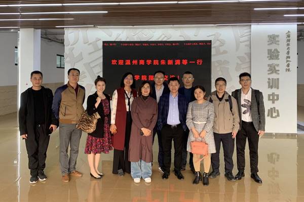 11月2日,温州商学院学术事务部副部长朱新满、信息服务中心主任沈良忠、信息工程学院副院长高巍巍、管理学院副院长吴肖蓉等一行8人来校考察交流。实践教学中心主任朱艳、统计系副主任武斌、金融系副主任洪铁松、工商管理系副主任李玫昌等参加座谈并陪同参观。
