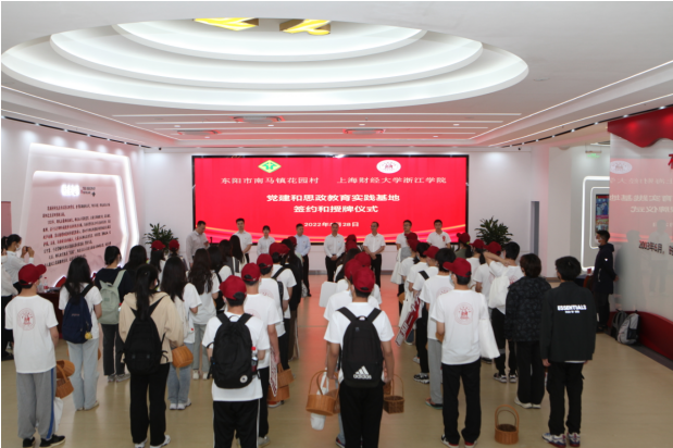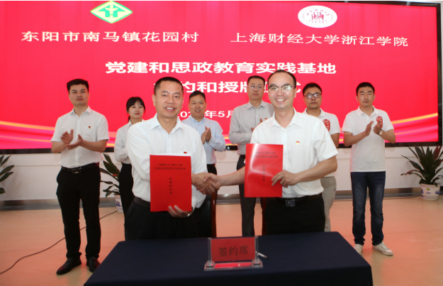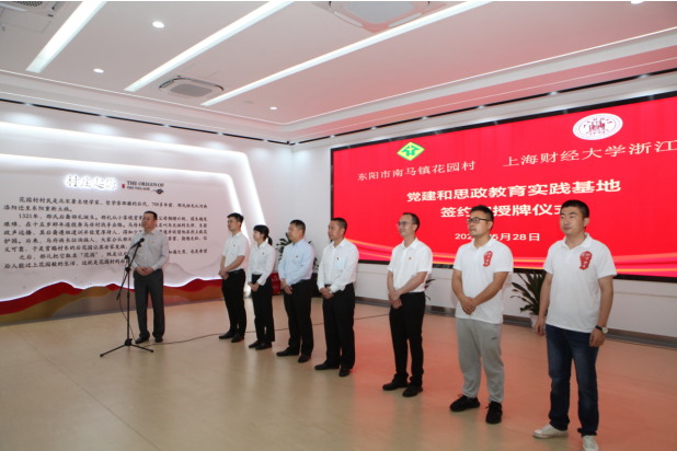 5月28日,半岛电子党建和思政教育实践基地签约和授牌仪式在东阳市南马镇花园党群服务中心举行。花园村党委副书记郭进武,半岛电子党委委员、组织部部长张正亮代表双方致辞并签约。统计系师生代表以及2022年浙中调查专家组成员等参加并共同见证。