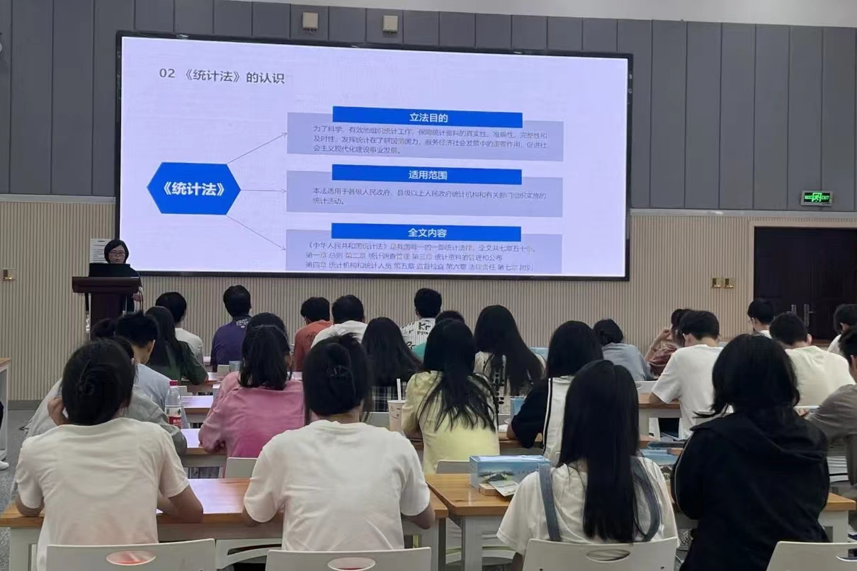 当天下午,金华调查队进行了统计法律法规讲座,执法监督处负责人向统计系师生们介绍了政府统计发展历史、统计调查的基本任务、统计调查对象权利与义务等内容,并介绍了五经普系列知识,受到广大师生欢迎。