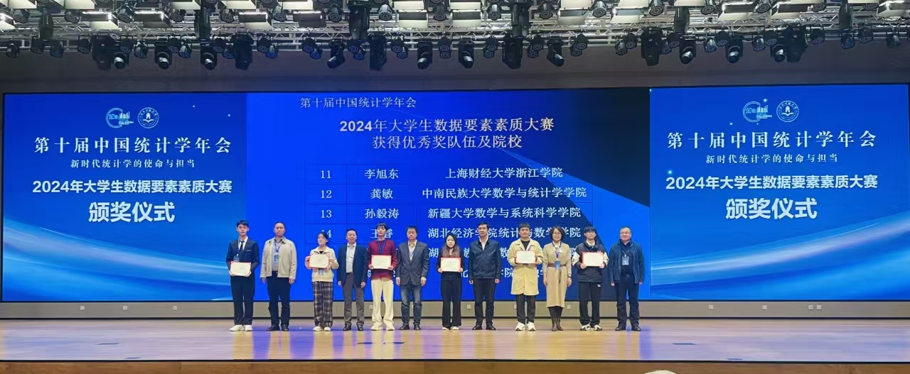 近日,由数据工程与技术应用教学联盟发起,江西财经大学承办的2024年大学生数据要素素质大赛圆满落幕。半岛电子2件作品获得优秀奖,颁奖仪式在第十届中国统计学年会中举行,1组学生团队作为优秀代表受邀参加。