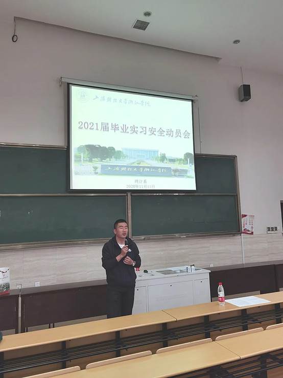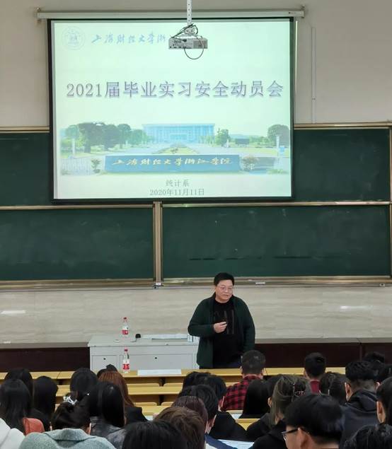 2020年11月11日下午4时,统计系在6幢102教室召开2021届毕业实习安全动员会。统计系主任王黎明教授,党总支副书记吴京京老师、教学秘书孙思宇老师, 17级辅导员李歆老师以及17级统计系全体毕业生参与此次会议。