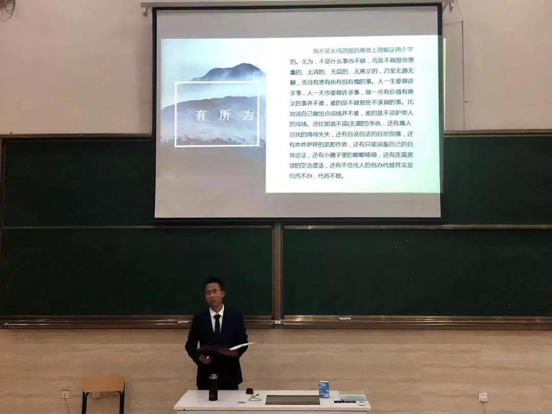 本次活动邀请了大学生艺术团主持部副部的陈书琪学姐、2018届汉语口语大赛省三等奖获得者朱春霖学长作为评委,公正公平地就语言组织能力、朗读者的语言表达能力、PPT展示等角度给每位参赛选手中肯的成绩与评价。
