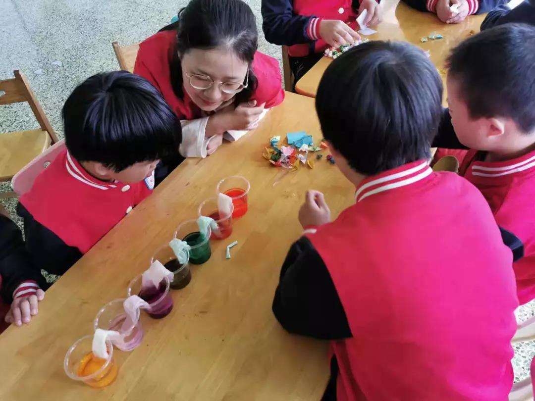 志愿者们在福利院负责人带领下走进了教室。以朗诵为开篇,带领小朋友们集体朗诵古诗,孩子们认真的跟读着每一句,虽然他们并不理解,但一字一句都透着一股说不出的可爱劲儿。紧接着,志愿者们教孩子们折星星,虽然有点复杂,但是孩子们努力学习,多次尝试,折出了一颗又一颗的星星,孩子们脸上开心的笑容让志愿者们感到无尽的满足。学习之余,志愿者们还带领了小朋友们进行了一项科学活动:色彩传送带,给孩子们展现科学的神奇魅力。
