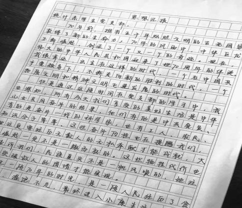 团总支学生会以信笺歌颂祖国。统计学子以中华传统文化中充满人文气息的软笔书写形式,浓墨重彩致敬新时代。在宣纸上写下一行行自己对祖国的心里话,致敬哺育和培养他们的伟大祖国母亲。